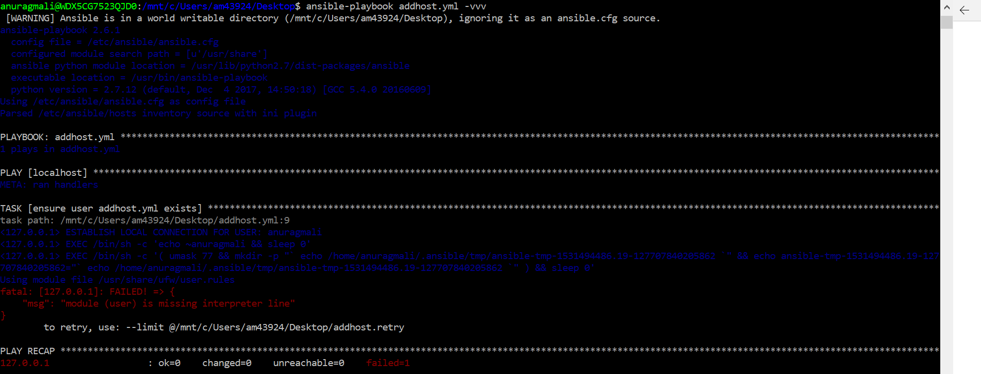 Ansible version = 2.6.1
